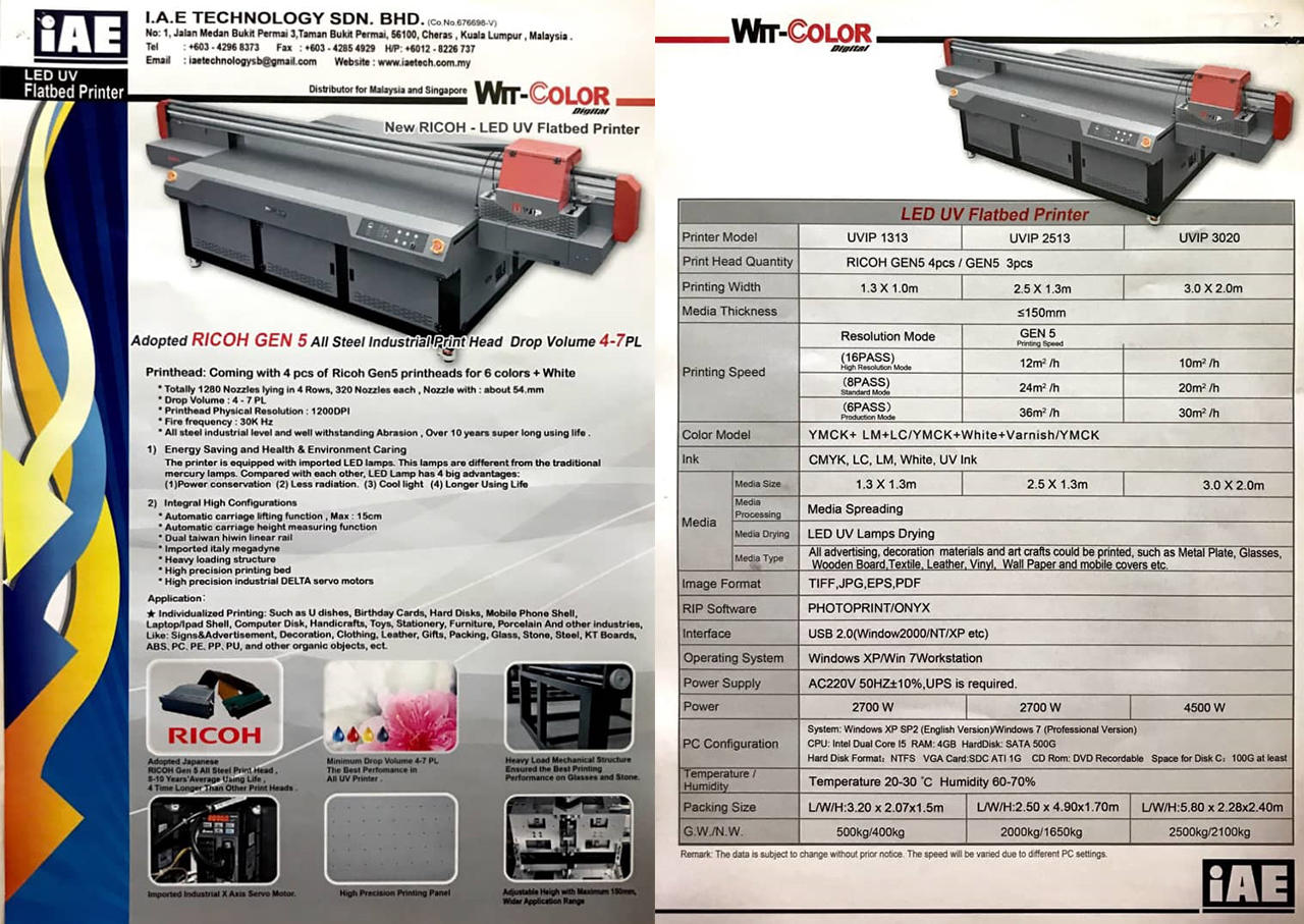 Wit-Color Flatbed LED UV Printer